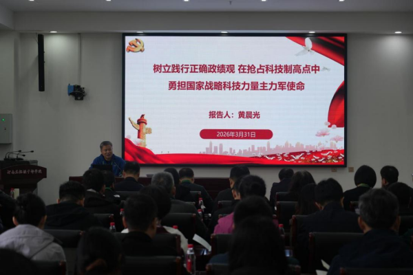 读书班上,中心党委书记、副主任黄晨光讲授了《树立践行正确政绩观 在抢占科技制高点中勇担国家战略科技力量主力军使命》专题党课。党课紧扣中心职责使命,带领参训同志深入学习席大大总书记关于树立和践行正确政绩观的重要论述,剖析科研机构政绩观偏差根源,并从领导干部与科研人员两个层面明确实践要求,部署中心学习教育工作。